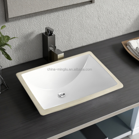 आधुनिक अपार्टमेंट बाथरूम कैबिनेट के साथ अंतर्निहित सिरेमिक वॉशबेसिन होटल कमरे आयताकार एम्बेडेड वॉशबेसिन्स