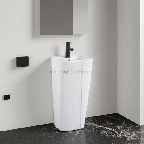 दक्षिण पूर्व एशिया के होटलों में फर्श पर खड़े स्तंभ प्रकार सिरेमिक वाशबेसिन और बाथरूम में सफेद ऊर्ध्वाधर वाशबेसिन